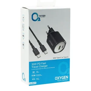 شارژر دیواری اکسیژن مدل CH9 دو پورت 30 وات با کابل تایپ C