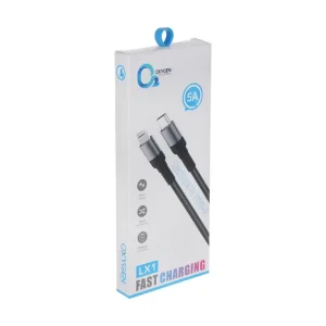 کابل شارژ اکسیژن مدل LX-5 دو سر تایپ سی، ۱ متر، ۵ آمپر با بدنه سیلیکونی طرحدار