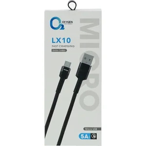 کابل شارژ اکسیژن مدل LX-10 میکرو، ۱.۲ متر، ۵ آمپر با بدنه کنفی و شارژ سریع
