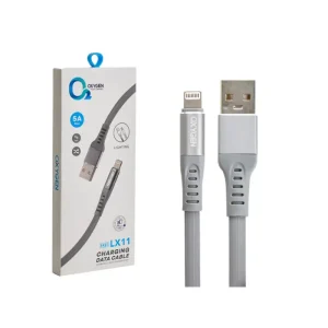 کابل شارژ اکسیژن مدل LX-11 لایتنینگ، با طول ۱ متر، ۵ آمپر با بدنه فلت سیلیکونی و سر فلزی