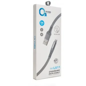 کابل شارژ اکسیژن مدل LX-11 میکرو، طول ۱ متر، ۵ آمپر با بدنه فلت سیلیکونی و سر فلزی
