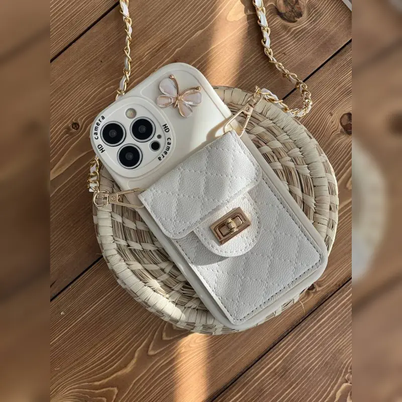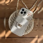 • بند زنجیری ست: زنجیر دوشی طلایی/نقره‌ای قابل تنظیم برای آویزان کردن گوشی از دست یا کوله‌پشتی