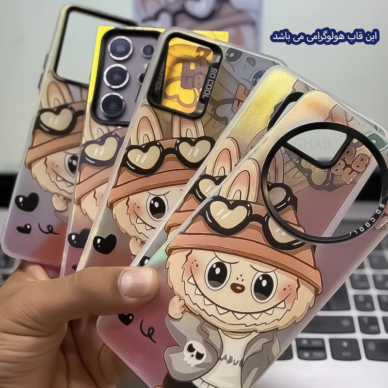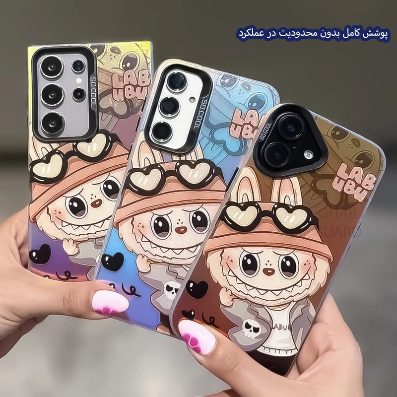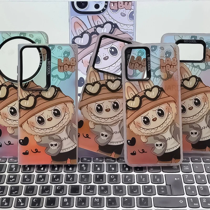 در طراحی قاب، شخصیت محبوب لبوبو با عینک قلبی و کلاه کارتونی بهزیبایی نقش بسته که جذابیت بصری آن را دوچندان کرده است. قاب در دو رنگ کلاسیک مشکی و هفترنگ هولوگرامی ارائه میشود که انتخاب را برای سلیقههای مختلف آسان کردهاند.