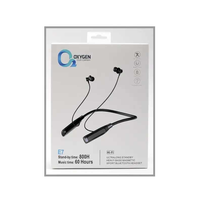 هندزفری بلوتوث گردنی اکسیژن مدل E7 مگنتی مناسب برای مکالمه و موسیقی با 30 ساعت شارژ
