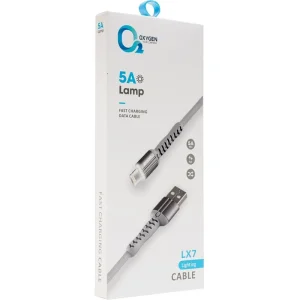 کابل شارژ اکسیژن مدل LX7 لایتنینگ چراغ دار با شدت جریان 5 آمپر و بدنه کنفی 1 متری