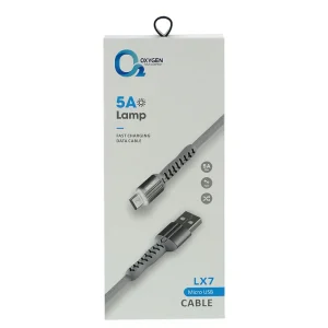 کابل شارژ اکسیژن مدل LX7 میکرو چراغ دار با شدت جریان 5 آمپر و بدنه کنفی 1 متری