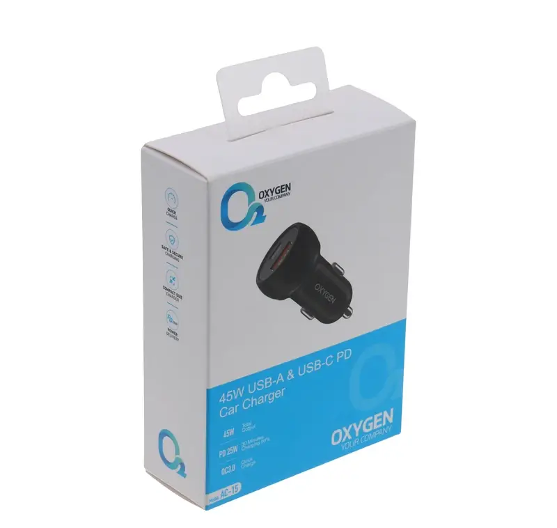 آیا به دنبال یک شارژر فندکی قدرتمند از برند اکسیژن هستید؟ شارژری با قابلیت پورت تایپ سی برای دستگاههای جدید شما داشته باشد؟ شارژر فندکی اکسیژن مدل AC-15 تایپ سی انتخابی عالی برای شماست. این شارژر فندکی اکسیژن توان کلی 45 وات ارائه میدهد و از شارژ سریع پشتیبانی میکند. دارای دو پورت است: یک پورت تایپ C با پشتیبانی از PD و یک پورت استاندارد USB با پشتیبانی از QC3.0. ویژگی منحصر به فرد آن، نور الیت (چراغ دار) است. این شارژر فندکی اکسیژن AC-15 تایپ سی برای شارژ سریع و همزمان انواع گوشی، تبلت و حتی برخی لپتاپها در خودرو عالی است.